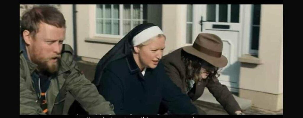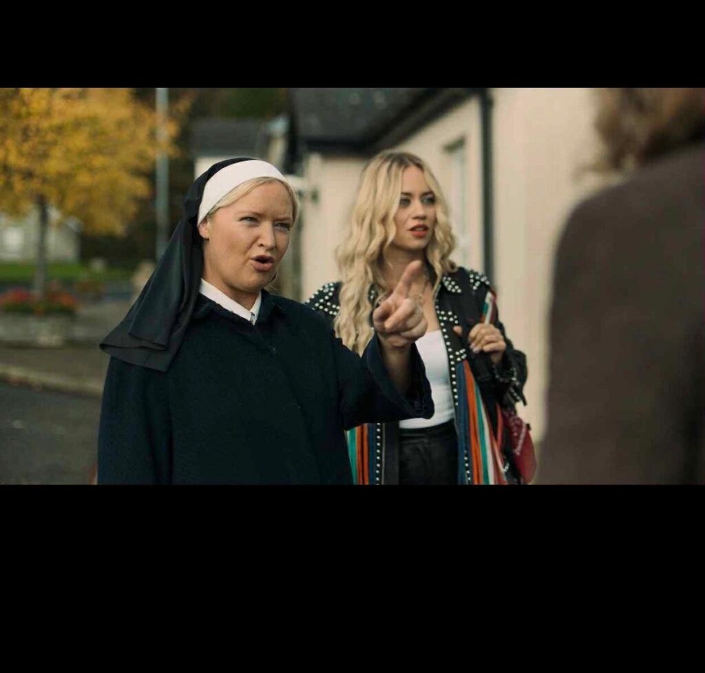 She has just finished a whirlwind of PR from the last few months. Claire plays ‘The Nun’ in the recent music-themed, Irish comedy, road-trip movie The Spin!! It premiered in London in October 2025.